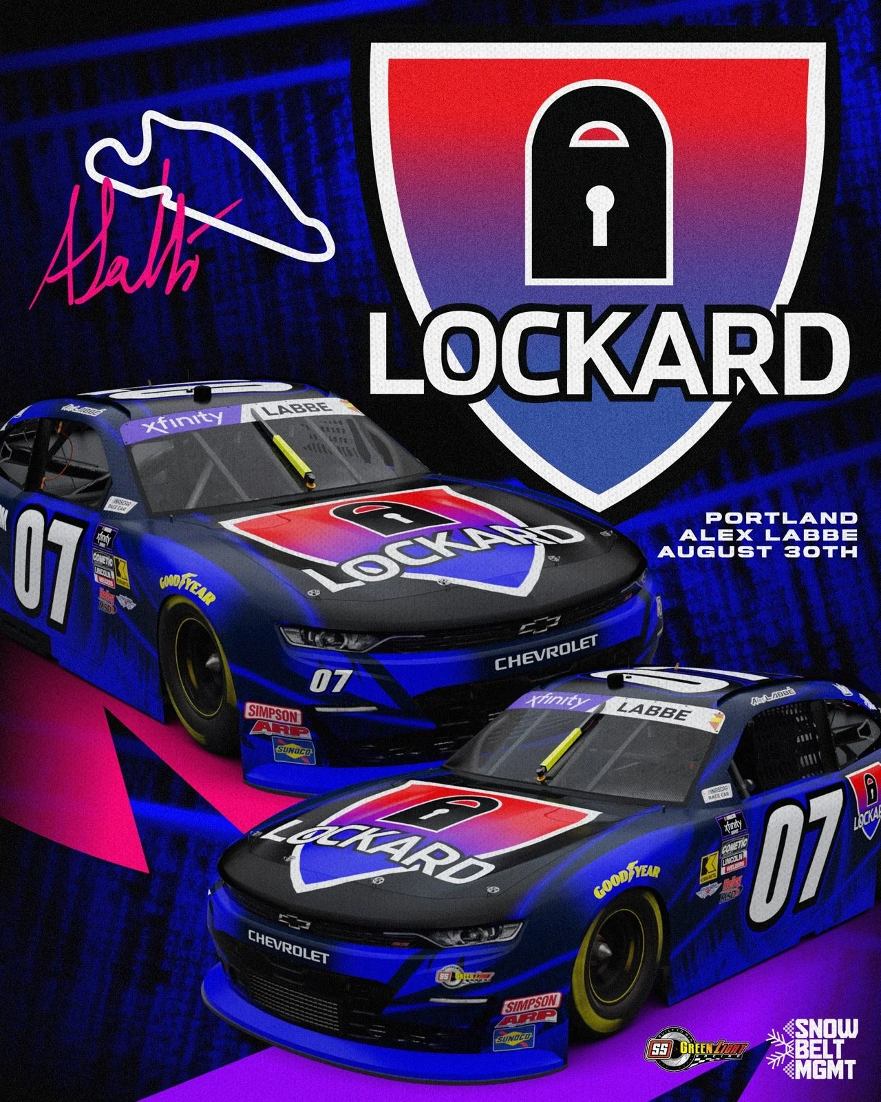 MOORESVILLE, NC, August 28, 2025 – NASCAR driver Alex Labbé today announced that he is partnering with Lockard Security for the NASCAR Xfinity Series race at Portland International Raceway. The Lockard Security livery will be displayed on the No. 07 of SS-GreenLight Racing.